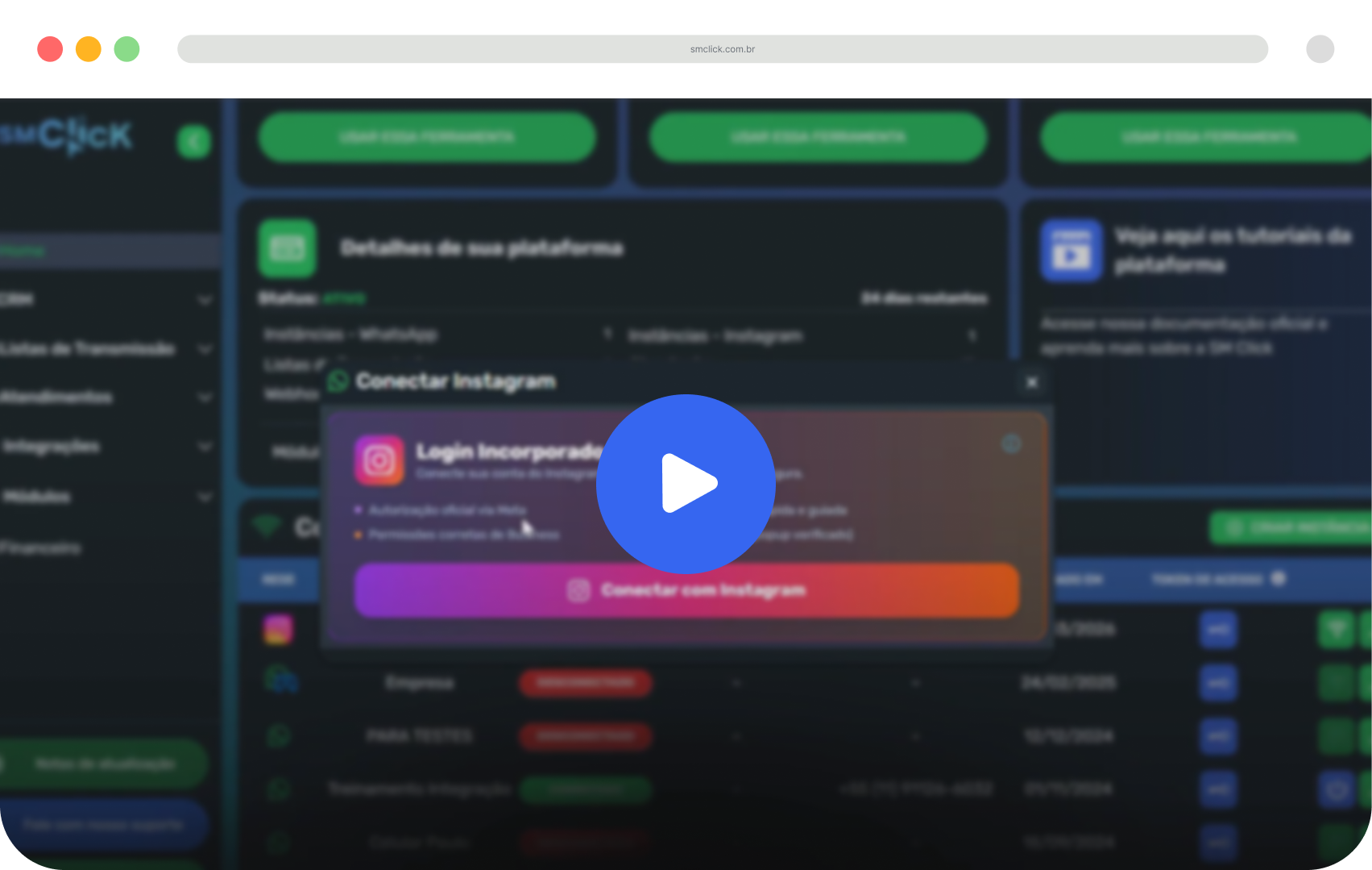 Tenha mais um canal estratégico integrado à sua rotina comercial. Agora, a SM Click também se conecta a perfis do Instagram, permitindo que sua operação acompanhe contatos com mais organização, continuidade e controle no mesmo ecossistema de atendimento.